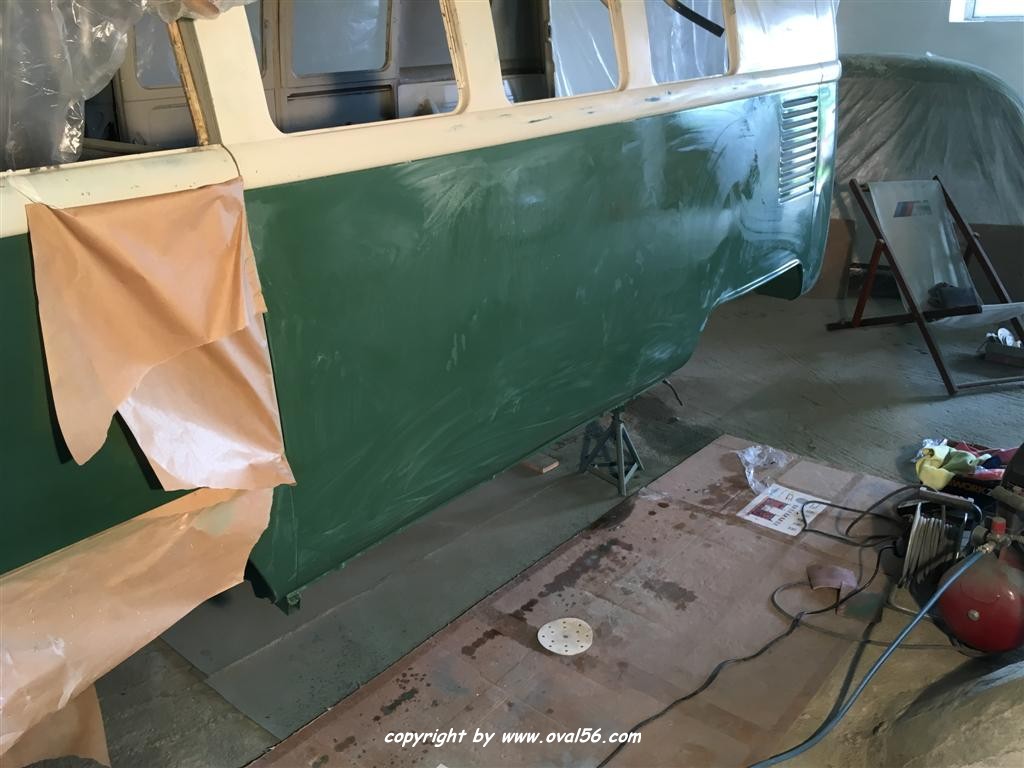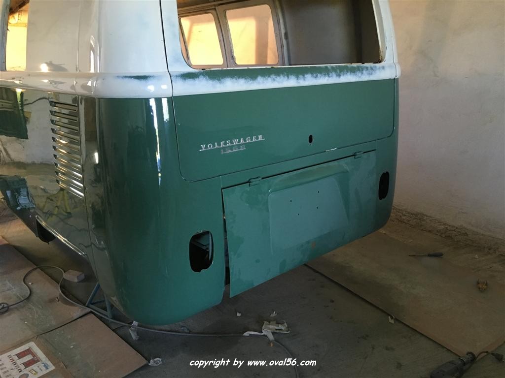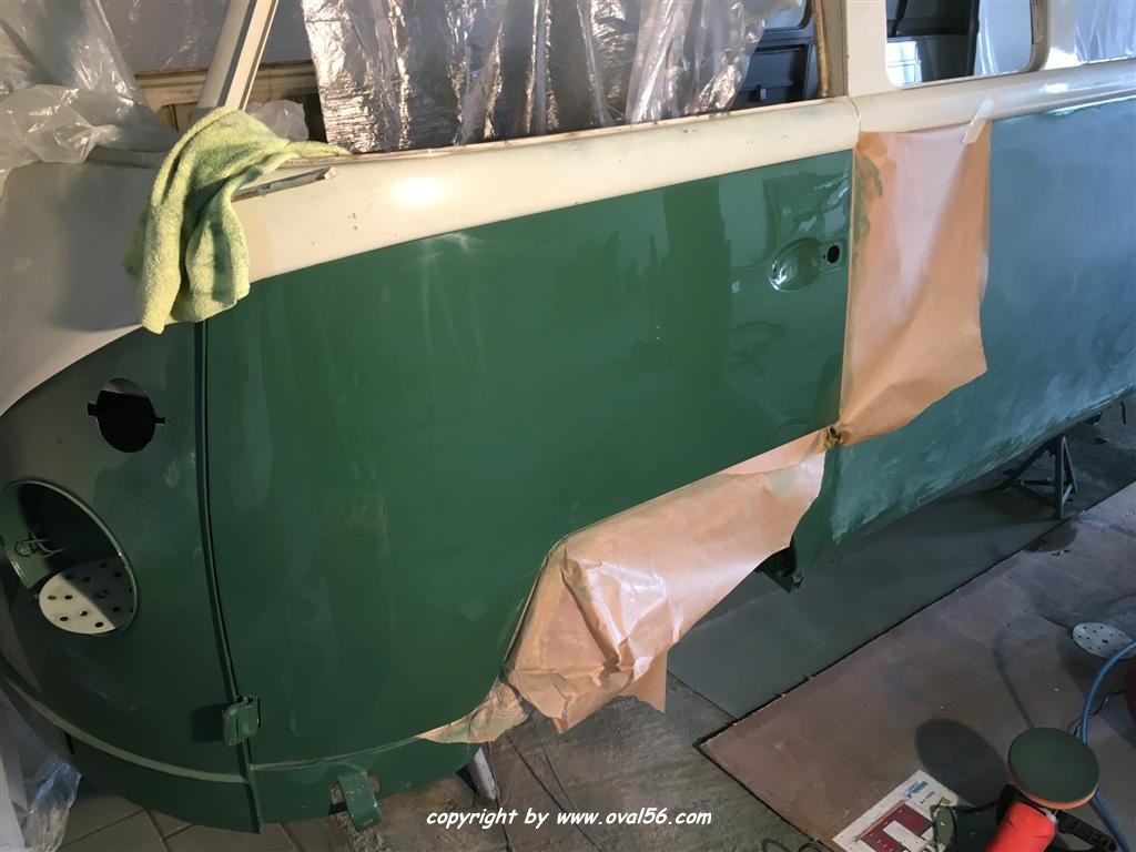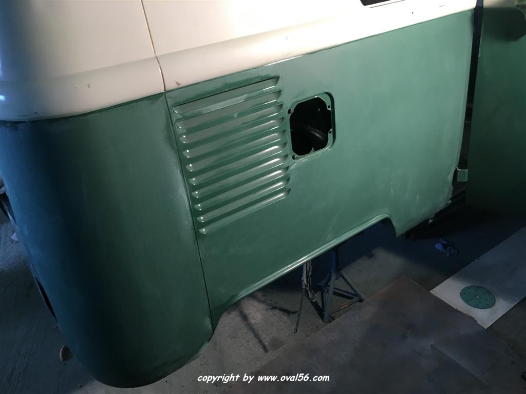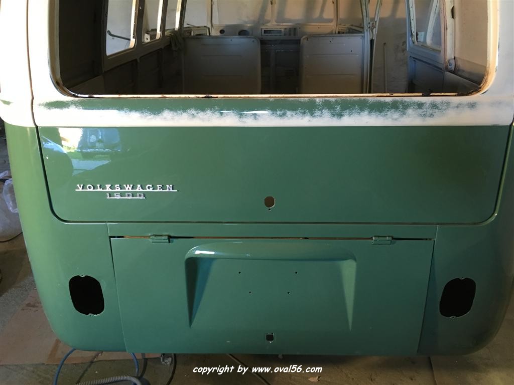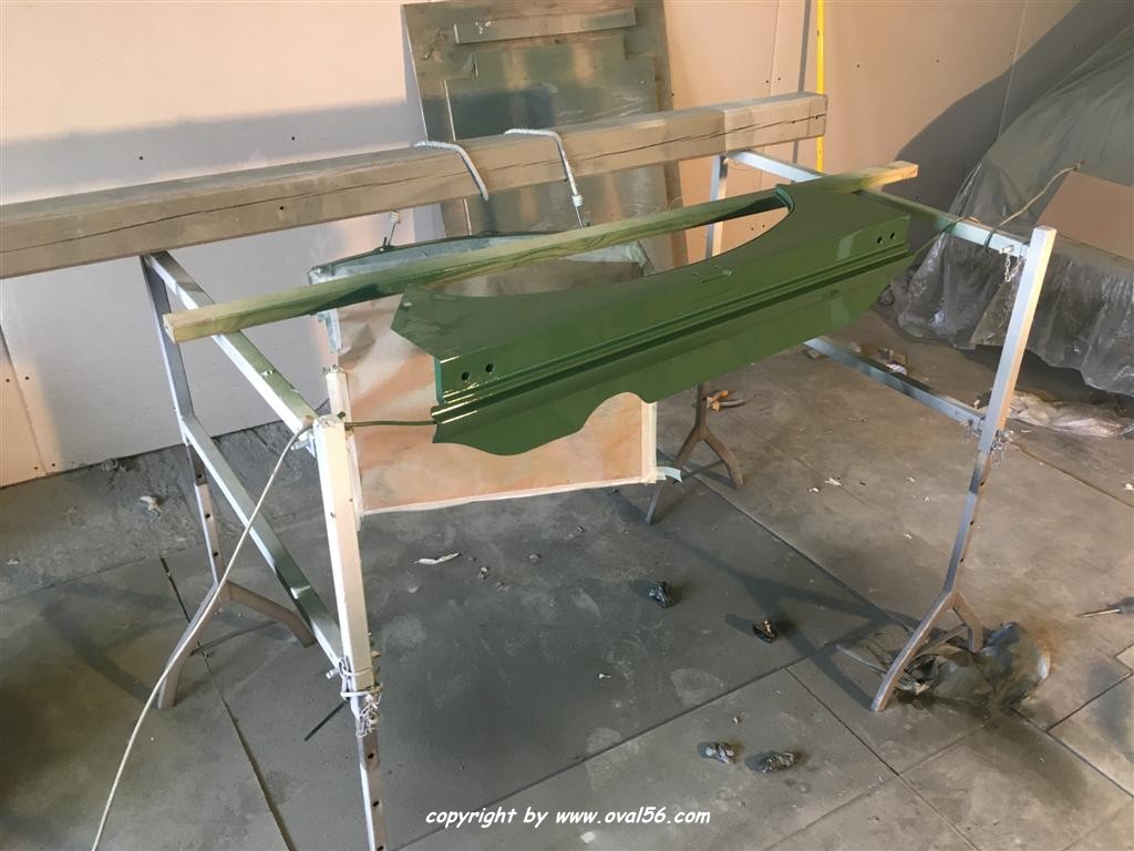 Runde grün. Das Heckblech hat ebenso den letzten Farbauftrag bekommne, grün