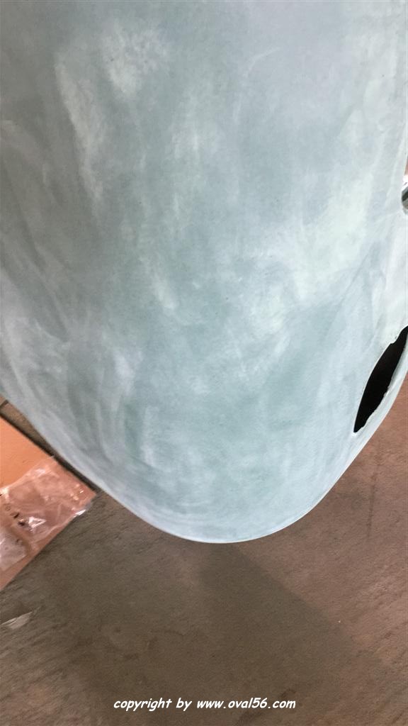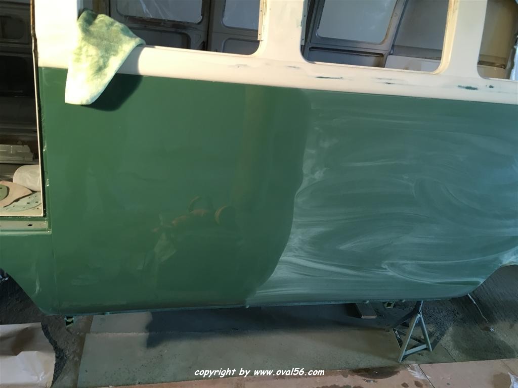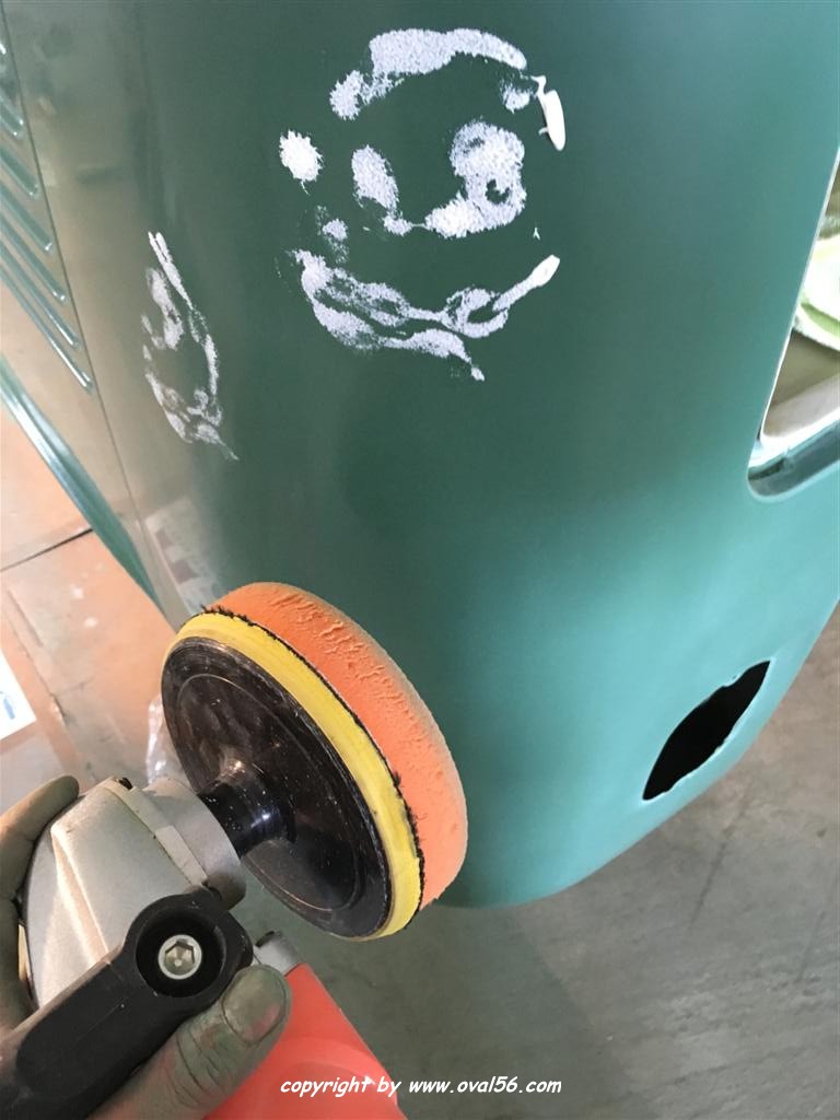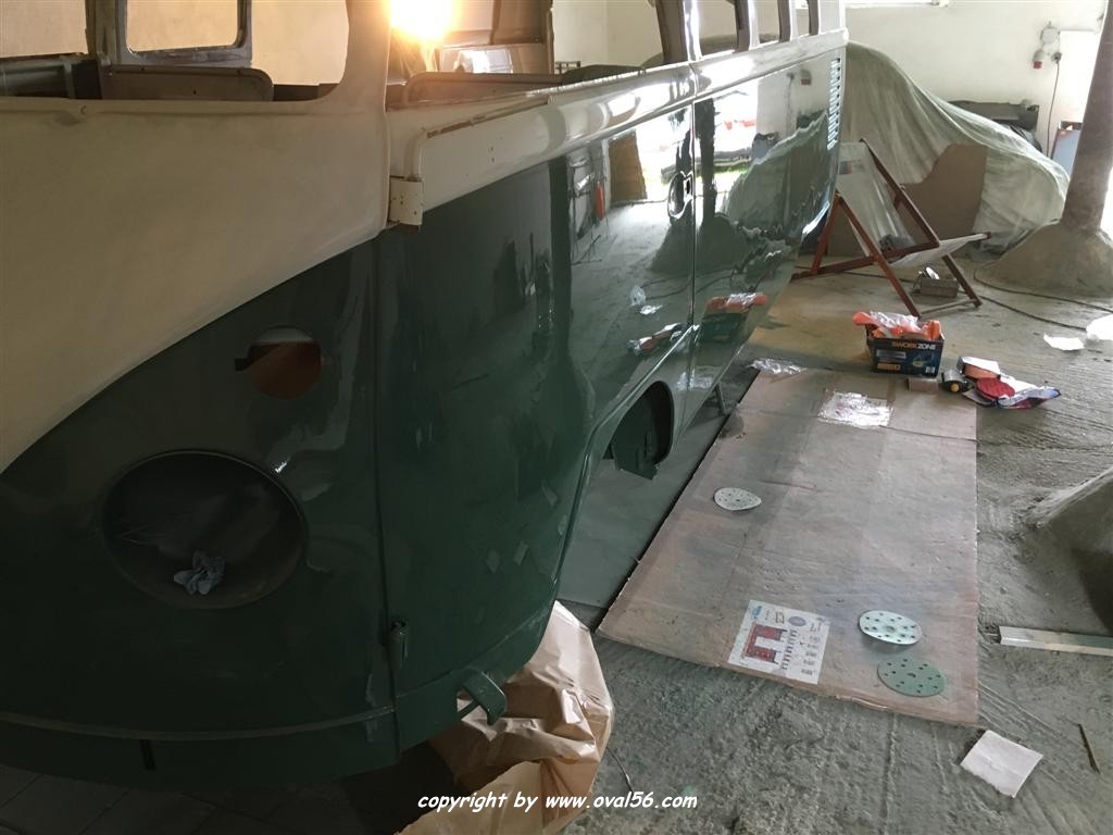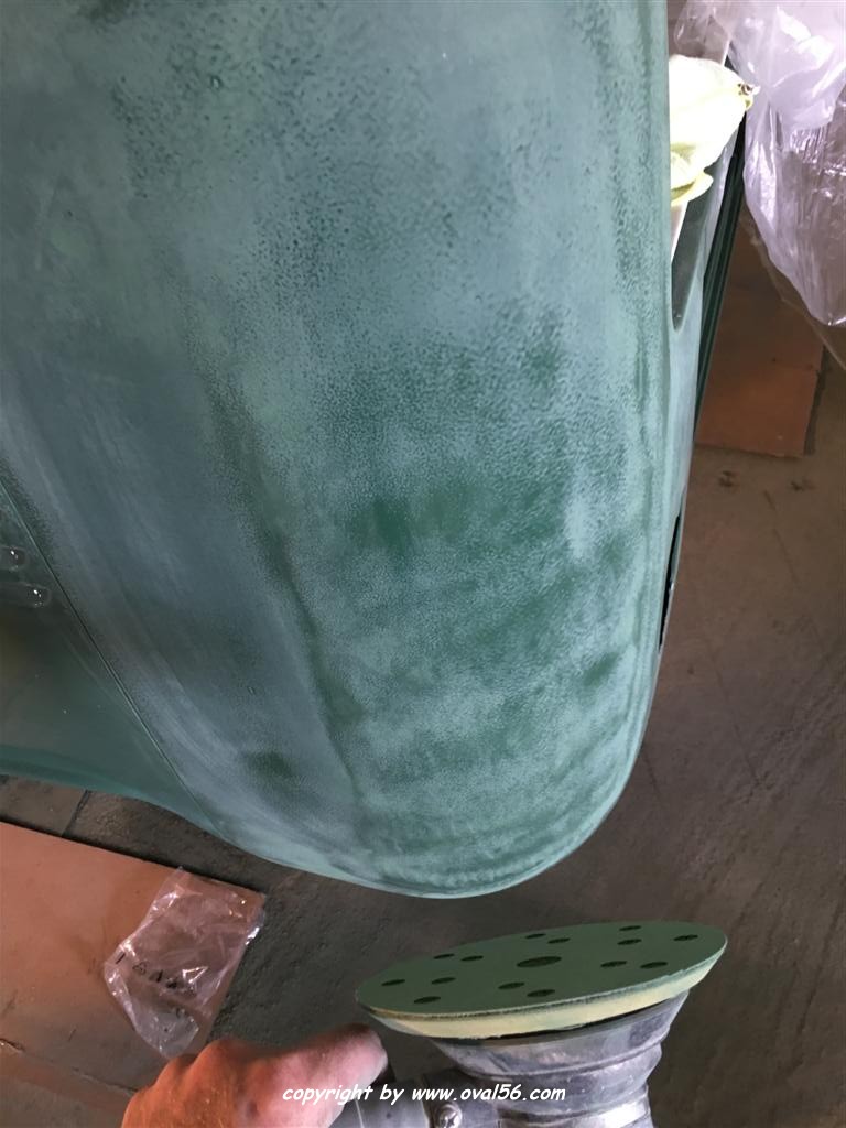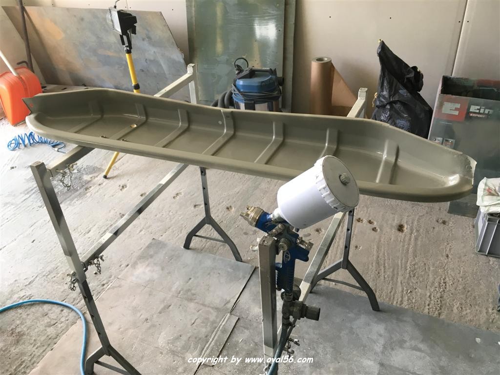 Runde grün. Das Heckblech hat ebenso den letzten Farbauftrag bekommne, grün