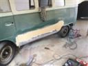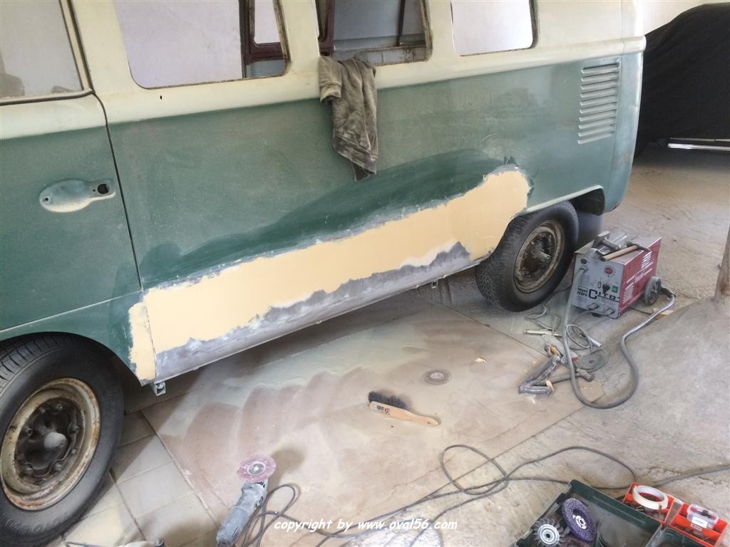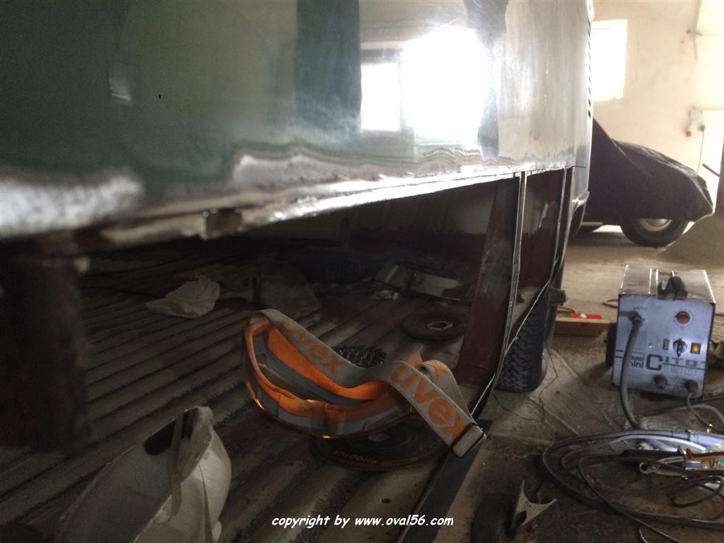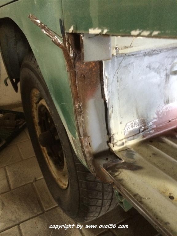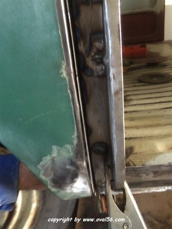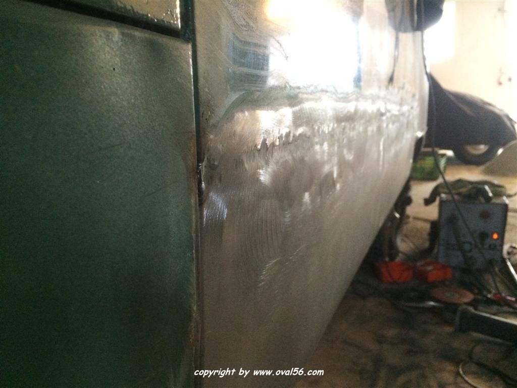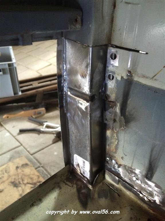 Seitenwand-Karosseriekleber und oben genau auf dem Falz geschweißt, was
